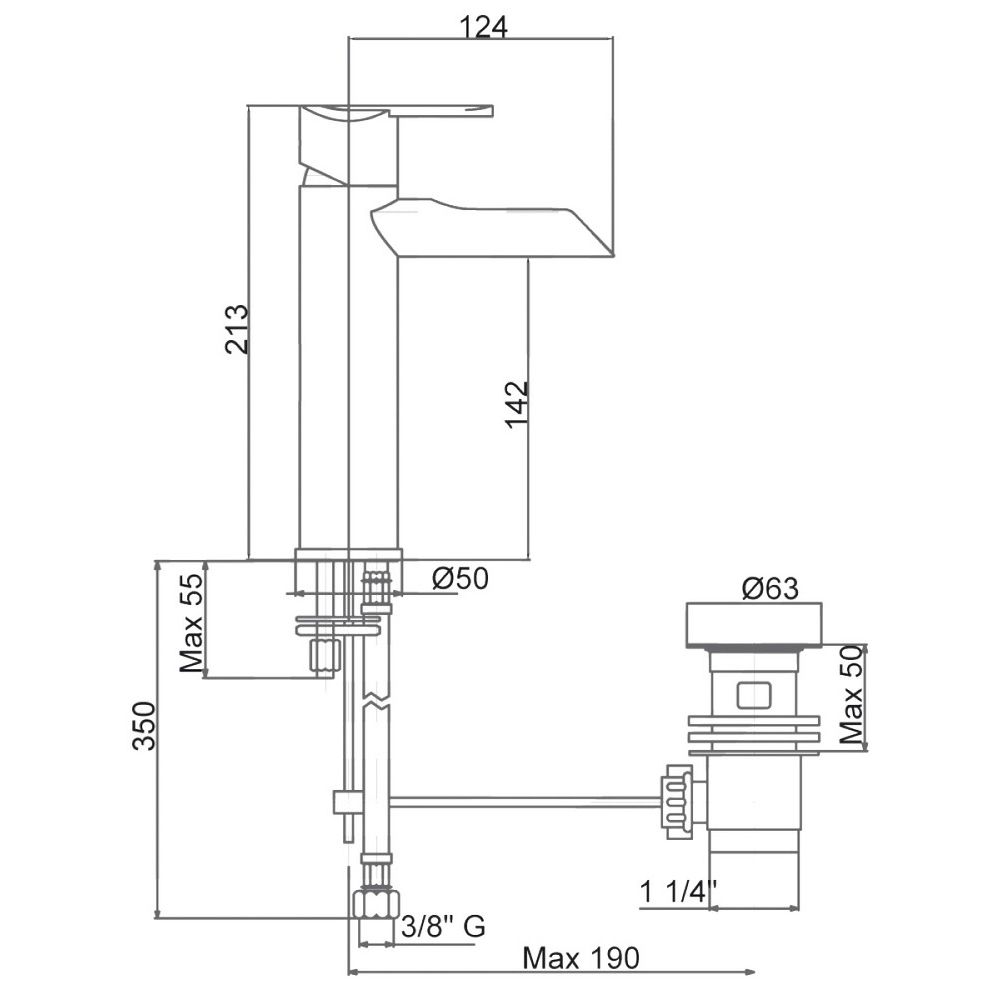 Комплектация:Смеситель. гибкий подвод. донный клапан. крепежные детали.