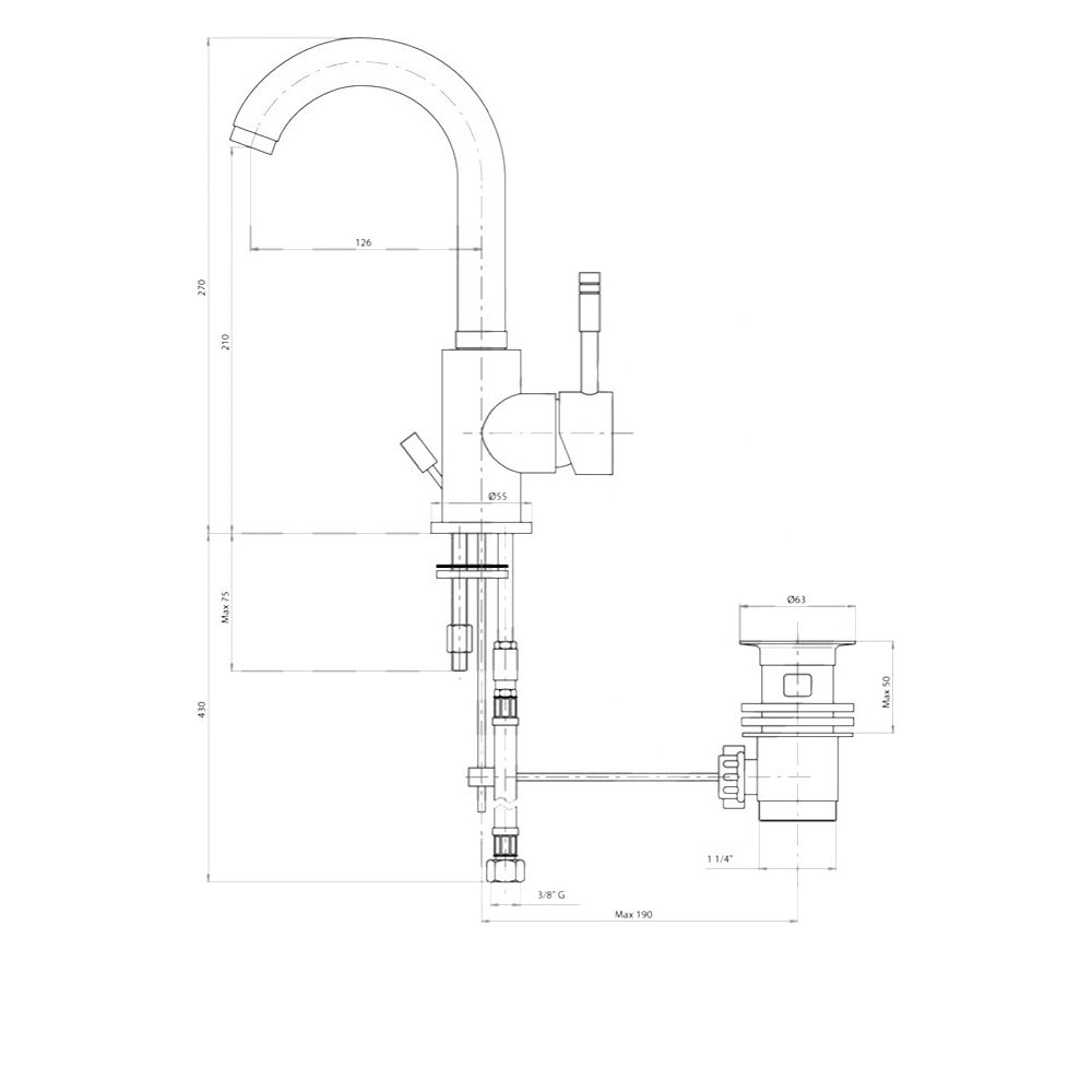 Комплектация:Смеситель. гибкий подвод. донный клапан. крепежные детали.