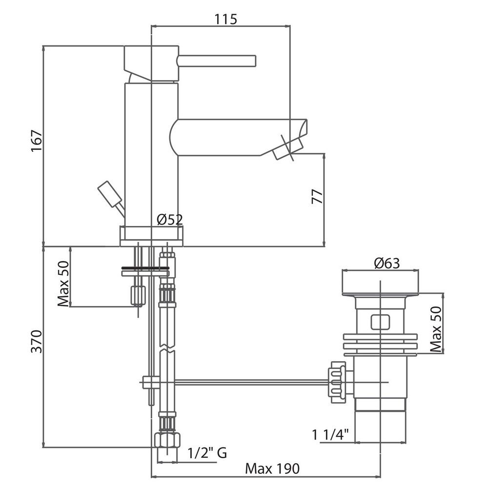 Комплектация:Смеситель. гибкий подвод. донный клапан. крепежные детали.