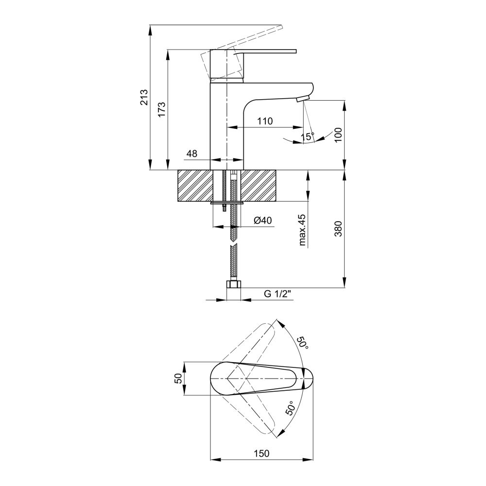Высота излива, мм:100