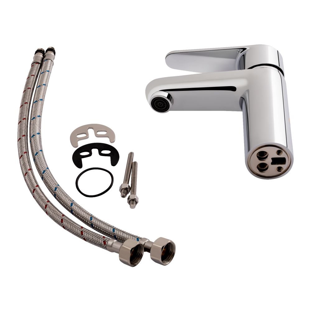 Комплектация:Смеситель. гибкий подвод. крепежные детали.