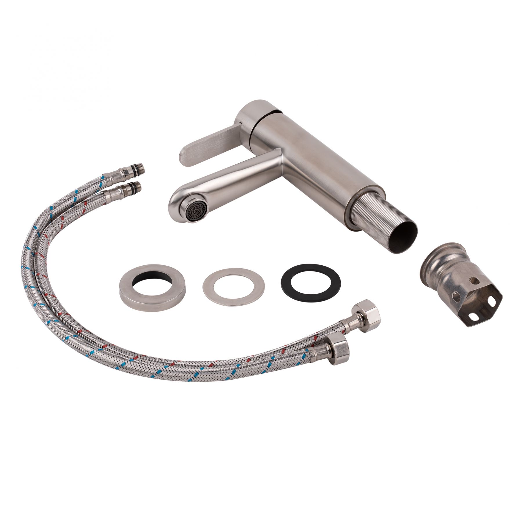 Смеситель для раковины Lidz (NKS) 11 31 001F изготовлен из нержавеющей стали, которая не подвержена коррозии, устойчива к ударам и трещинам. Никелированная бракованная поверхность придает смесителю не только долговечность, но и оригинальный внешний вид. Интенсивность водного потока и температура регулируются посредством рычажного перемещения.