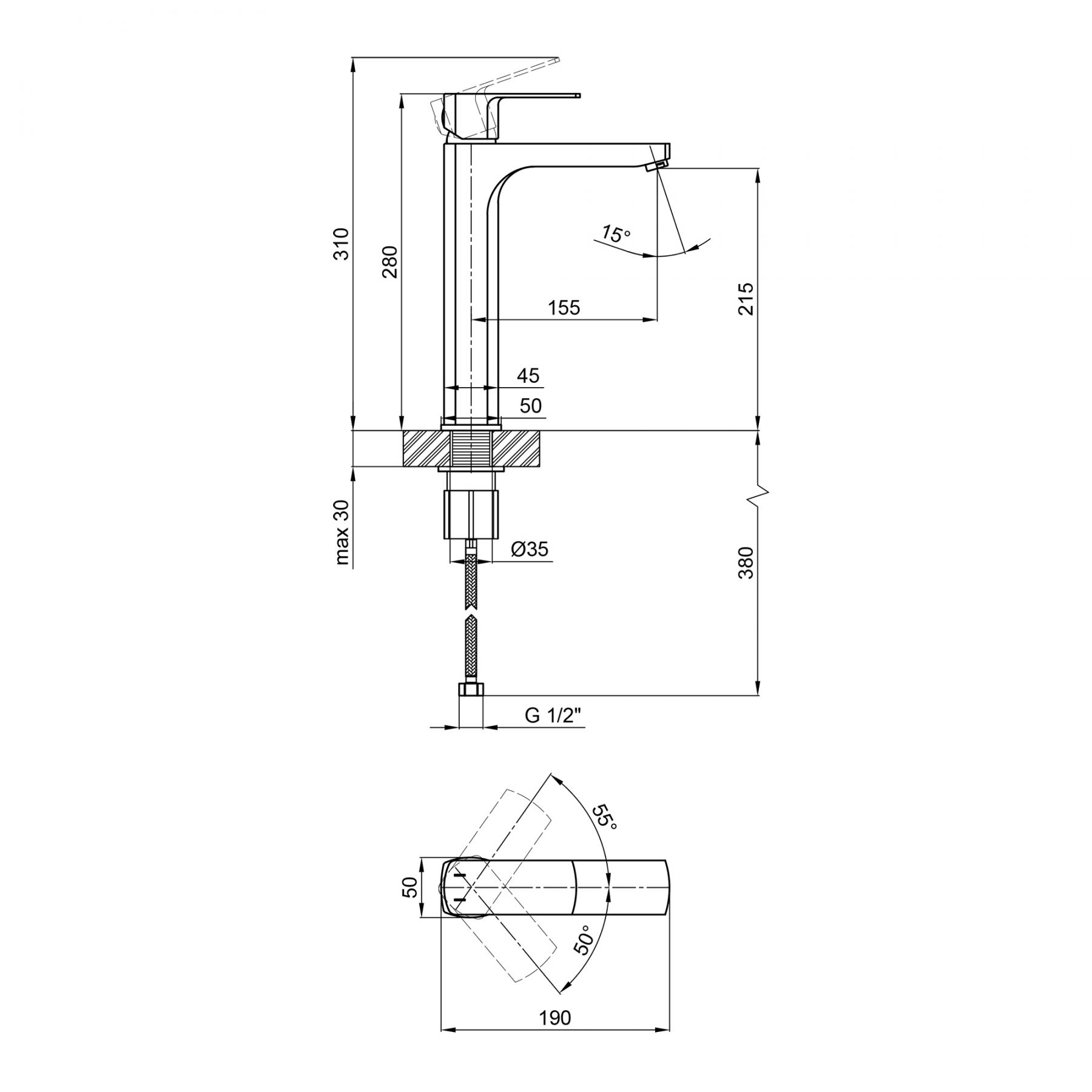 Комплектация:Смеситель. гибкий подвод. ключ для аэратора. крепежные детали.