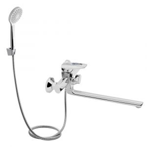 Смеситель для ванны Lidz (CRM) 13 33 005-1 с длинным поворотным изливом изготовлен из цинка, укомплектован кронштейном для ручного душа, душевым шлангом и воронкой. Для включения потока воды предусмотрен массивный рычаг с отверстием. Для переключения на душ – поворотный дивертор-рычаг. Настенный монтаж производится с помощью крепежных деталей, которые комплектуются вместе со смесителем. Круглые розетки скрывают все погрешности установки на отделке ванной.