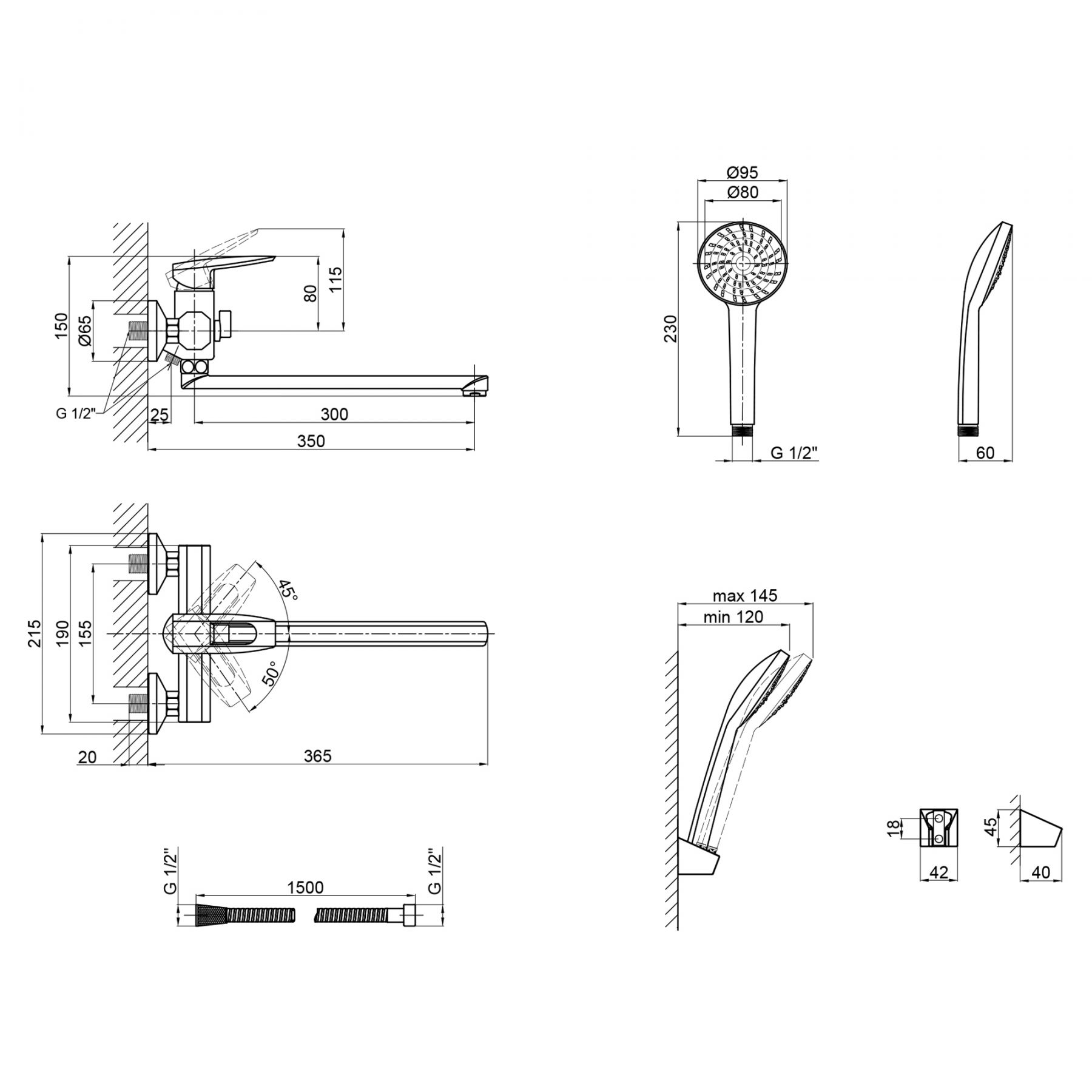 Комплектация:Смеситель. лейка для ручного душа. душевой шланг. кронштейн для ручного душа. крепежные детали.
