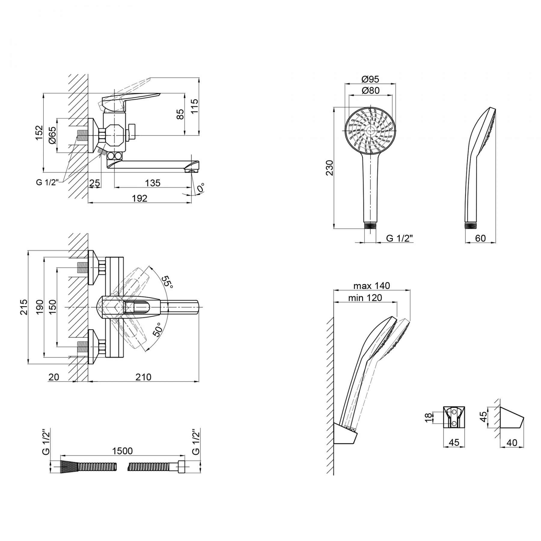 Комплектация:Смеситель. лейка для ручного душа. душевой шланг. кронштейн для ручного душа. крепежные детали.