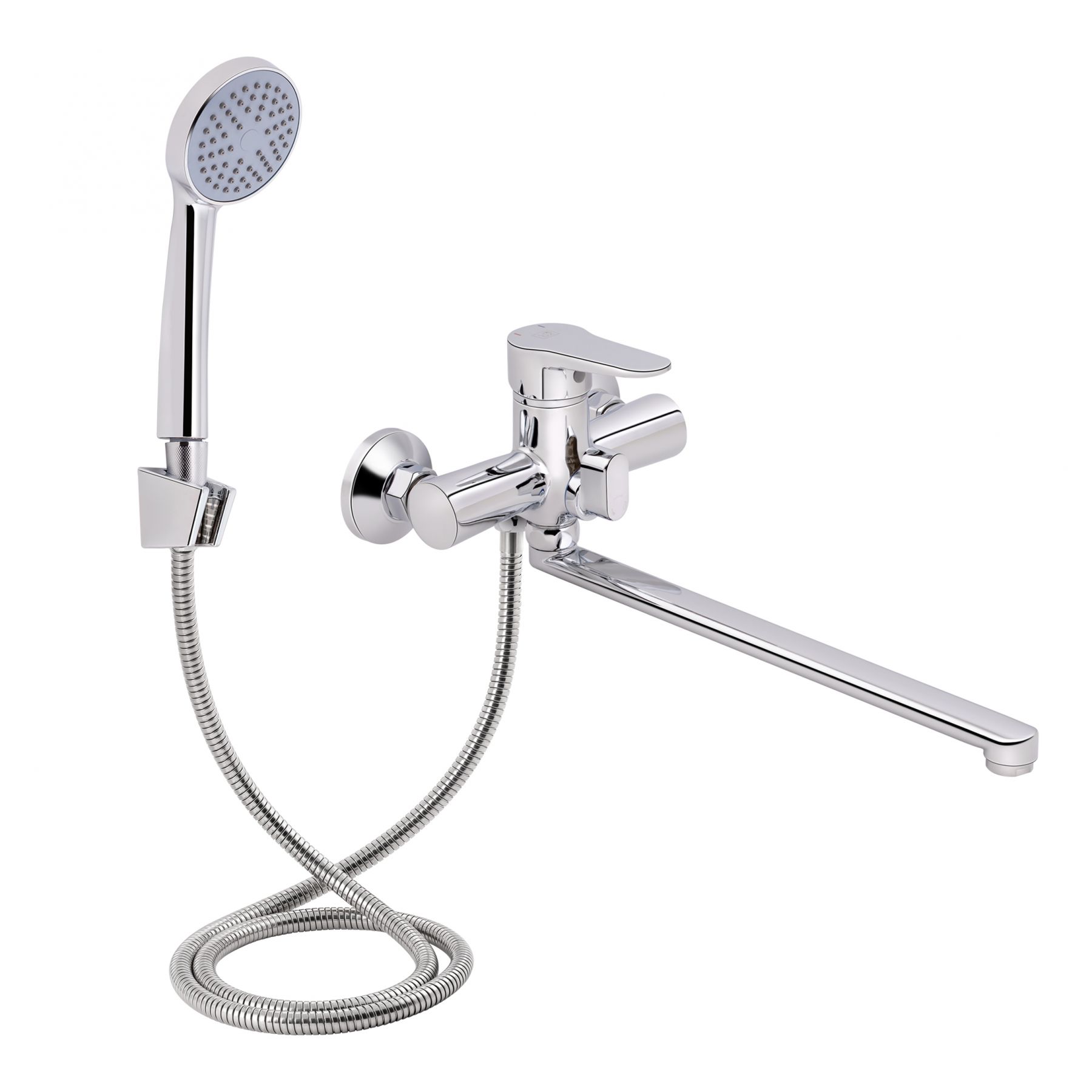 Смеситель для ванны Lidz (CRM) 14 34 005-1 с длинным поворотным изливом укомплектован держателем ручного душа, душевым шлангом и воронкой хромированного цвета. Для включения потока воды предусмотрен рычаг с нанесенной маркировкой Х+Г воды. Для переключения на душ – поворотный дивертор. Настенный монтаж производится с помощью крепежных деталей, которые комплектуются вместе со смесителем. Круглые розетки скрывают следы установки на обработке.