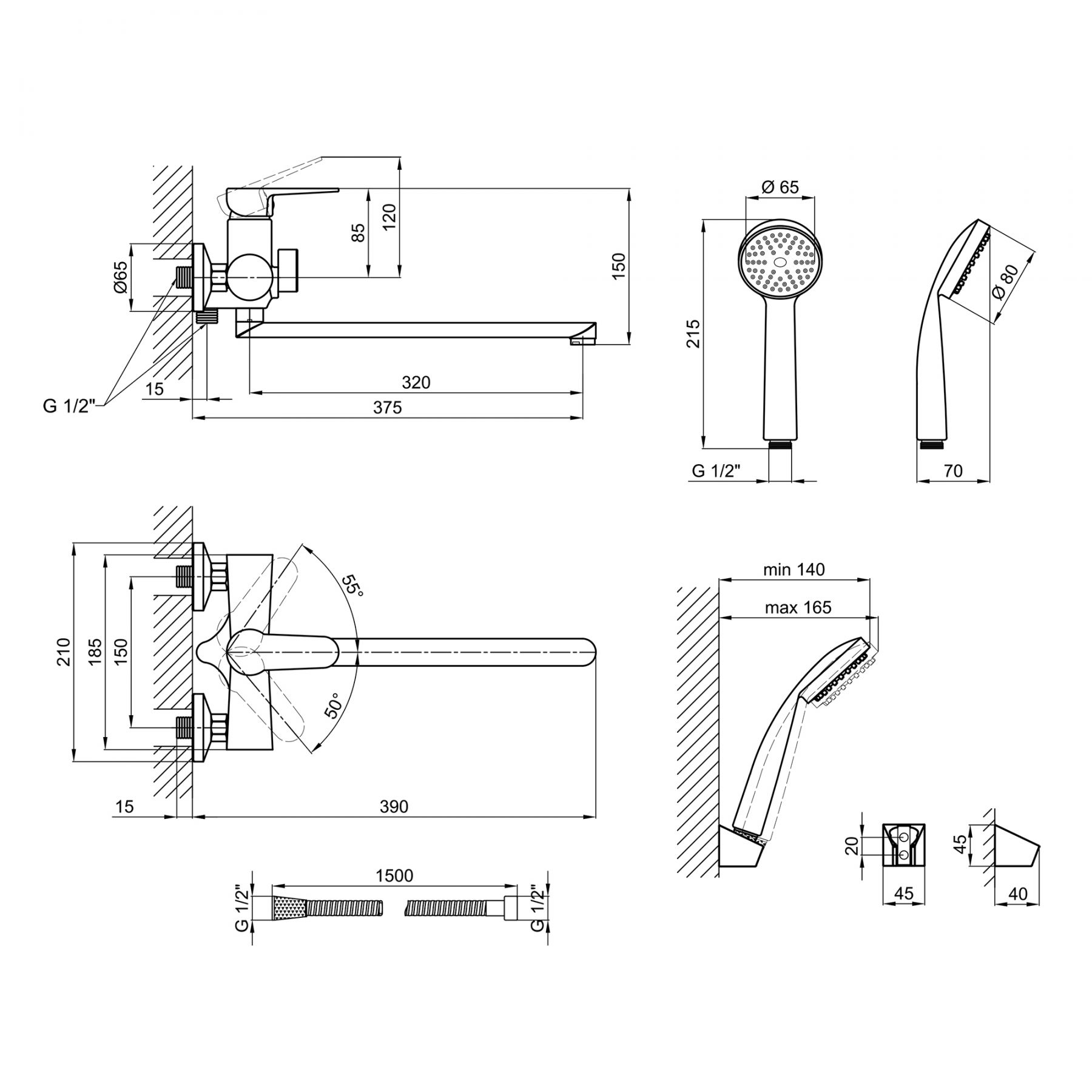 Комплектация:Смеситель. лейка для ручного душа. душевой шланг. кронштейн для ручного душа. крепежные детали.