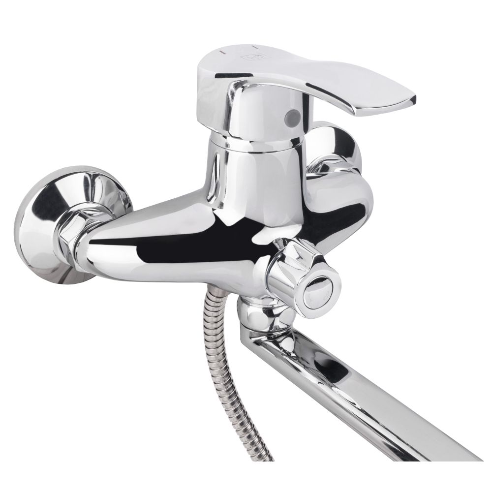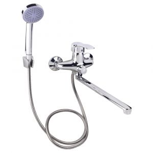 Смеситель для ванны Lidz (CRM) 41 86 005B-1 New с длинным поворотным изливом изготовлен из цинка, укомплектован кронштейном для ручного душа, душевым шлангом и воронкой. Благодаря хромированному покрытию имеет крепкую поверхность и привлекательный внешний вид. Декоративные розетки скрывают погрешности установки на отделке комнаты. Напор воды и ее температура регулируются поворотом рычага в нужное положение. Переключение ванны/душ осуществляется с помощью дивертора.
