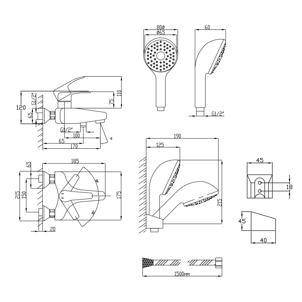 Комплектация:Смеситель. лейка для ручного душа. душевой шланг. держатель для ручного душа. крепежные детали.