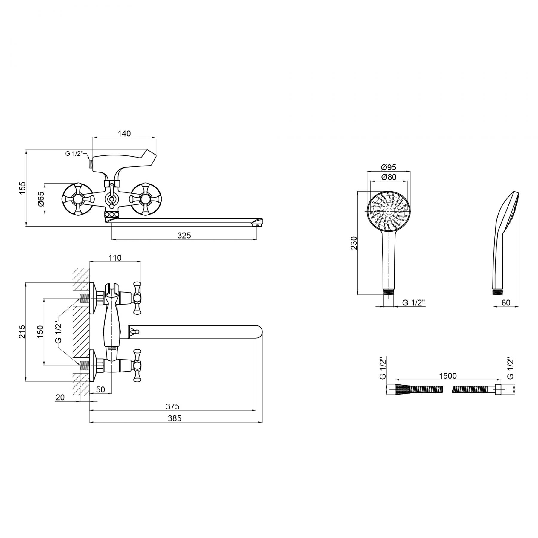 Комплектация:Смеситель. лейка для ручного душа. душевой шланг. крепежные детали.