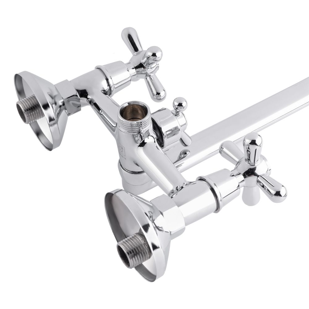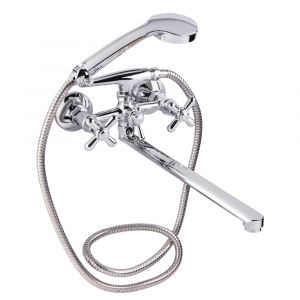 Смеситель для ванны Lidz (CRM) Dominox 15 143K с длинным поворотным изливом изготовлен из латуни, укомплектован душевым шлангом и воронкой. Благодаря хромированному покрытию имеет крепкую поверхность и привлекательный внешний вид. Для включения потока воды предусмотрено два вентиля. Для переключения на душ – дивертор. Настенный монтаж производится с помощью крепежных деталей, входящих в комплект. Декоративные розетки скроют все погрешности установки на отделке ванной.