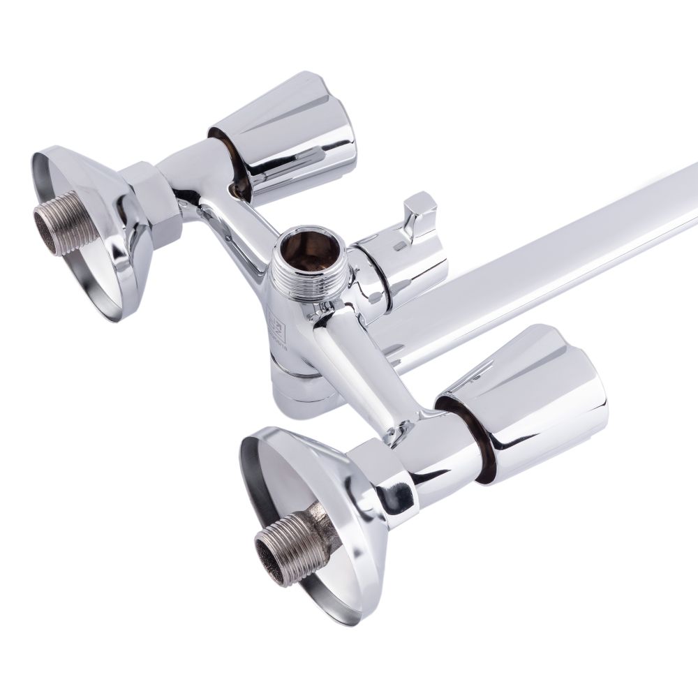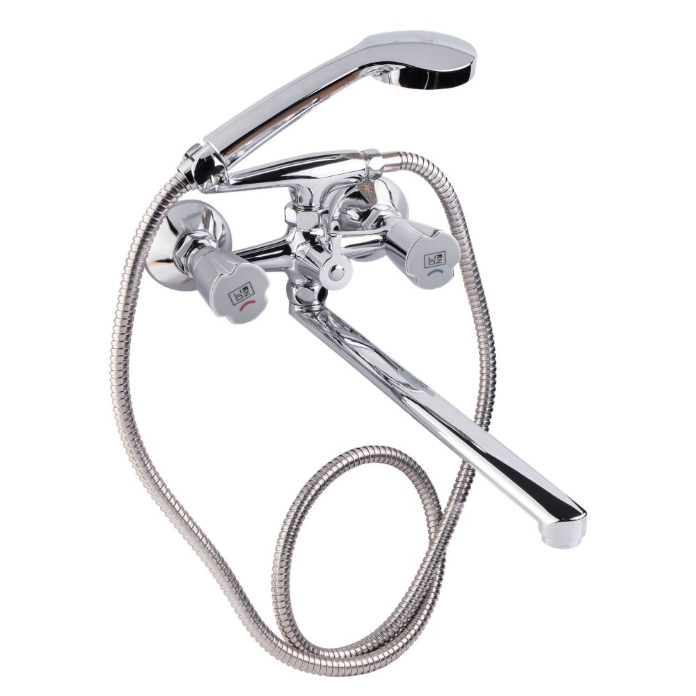 Смеситель для ванны Lidz (CRM) Mix 17 140 с длинным поворотным изливом изготовлен из латуни, укомплектован душевым шлангом, воронкой и держателем для воронки, для включения потока воды предусмотрено два вентиля. Для переключения на душ – дивертор. Настенный монтаж производится с помощью крепежных деталей, входящих в комплект. Декоративные розетки скрывают все погрешности установки.
