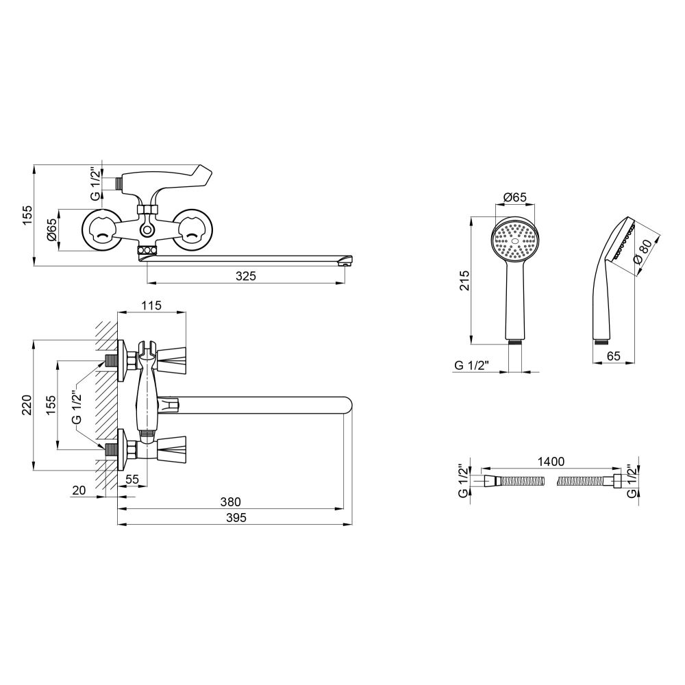Дополнительные характеристики:Габариты лейки для ручного душа: 215х80х65. Длина душевого шланга – 1400 мм.