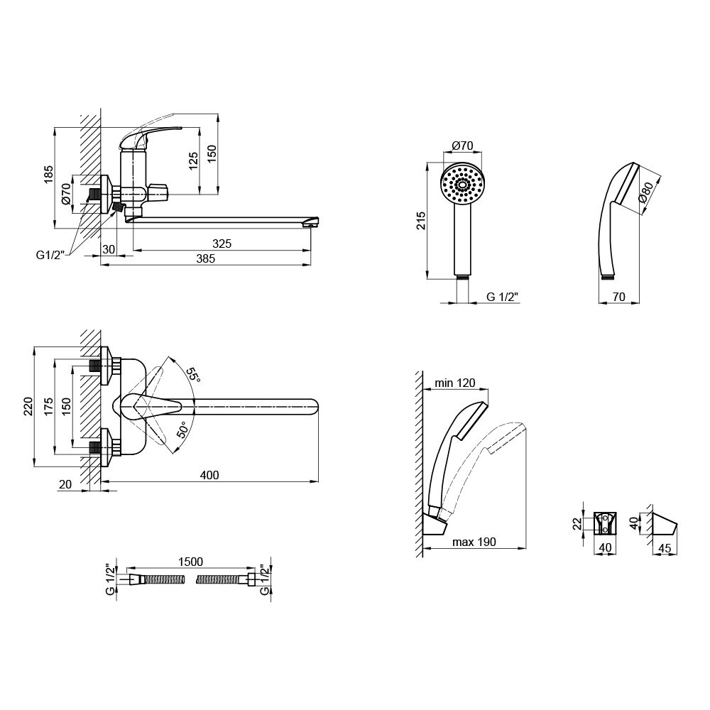 Комплектация:Смеситель. лейка для ручного душа. душевой шланг. держатель для ручного душа. крепежные детали.
