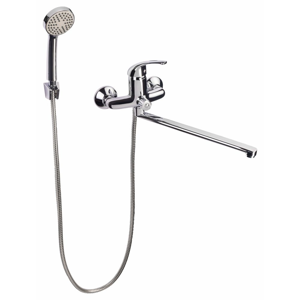 Смеситель для ванны Lidz (CRM) Smart 39 005-1 с длинным поворотным изливом изготовлен из латуни, укомплектован кронштейном для ручного душа, душевым шлангом и воронкой. Благодаря хромированному покрытию имеет крепкую поверхность и привлекательный внешний вид. Декоративные розетки скрывают погрешности установки на отделке комнаты. Напор воды и ее температура регулируются поворотом рычага в нужное положение. Переключение ванны/душ осуществляется с помощью дивертора.