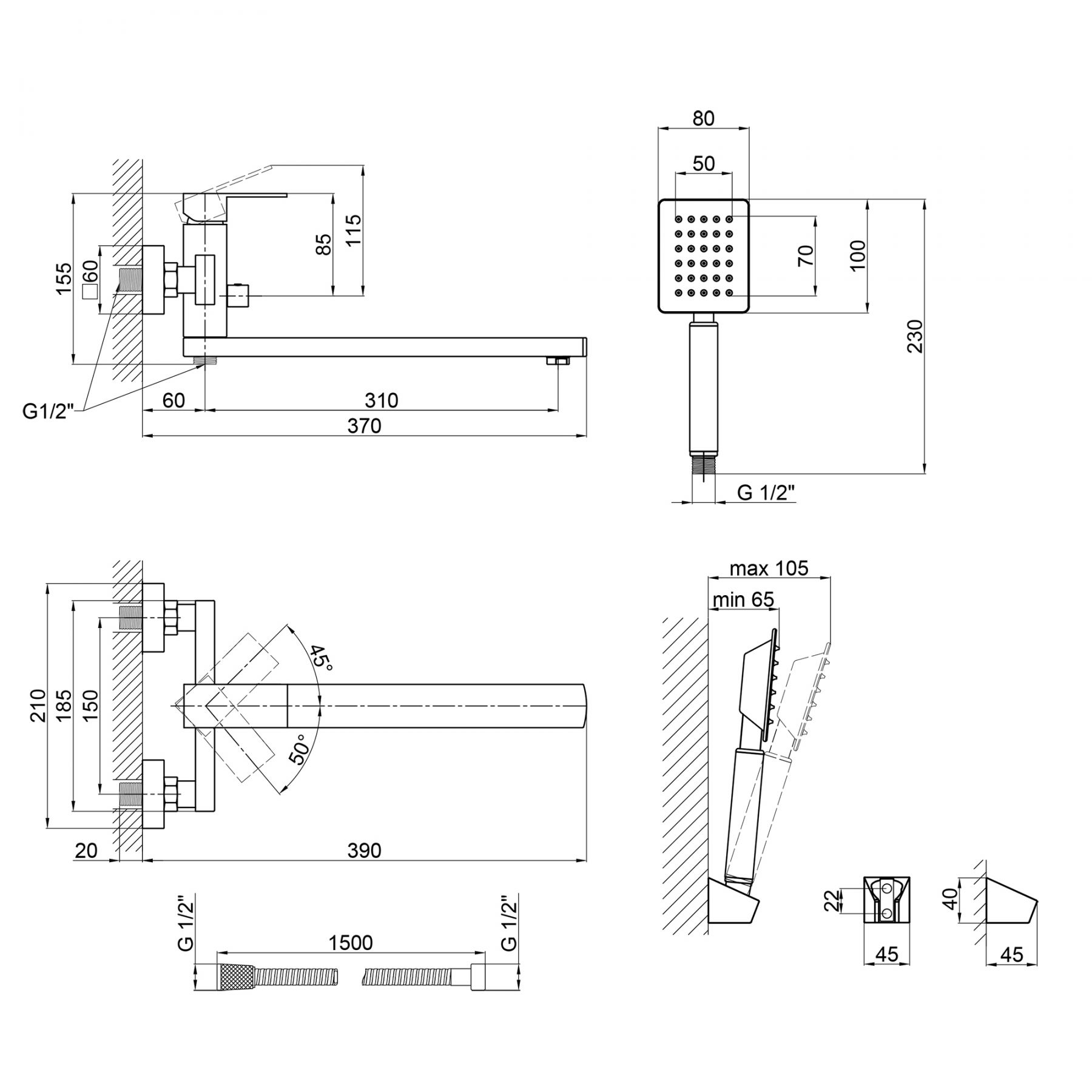 Комплектация:Смеситель. кронштейн для ручного душа. лейка для ручного душа. душевой шланг. крепежные детали.
