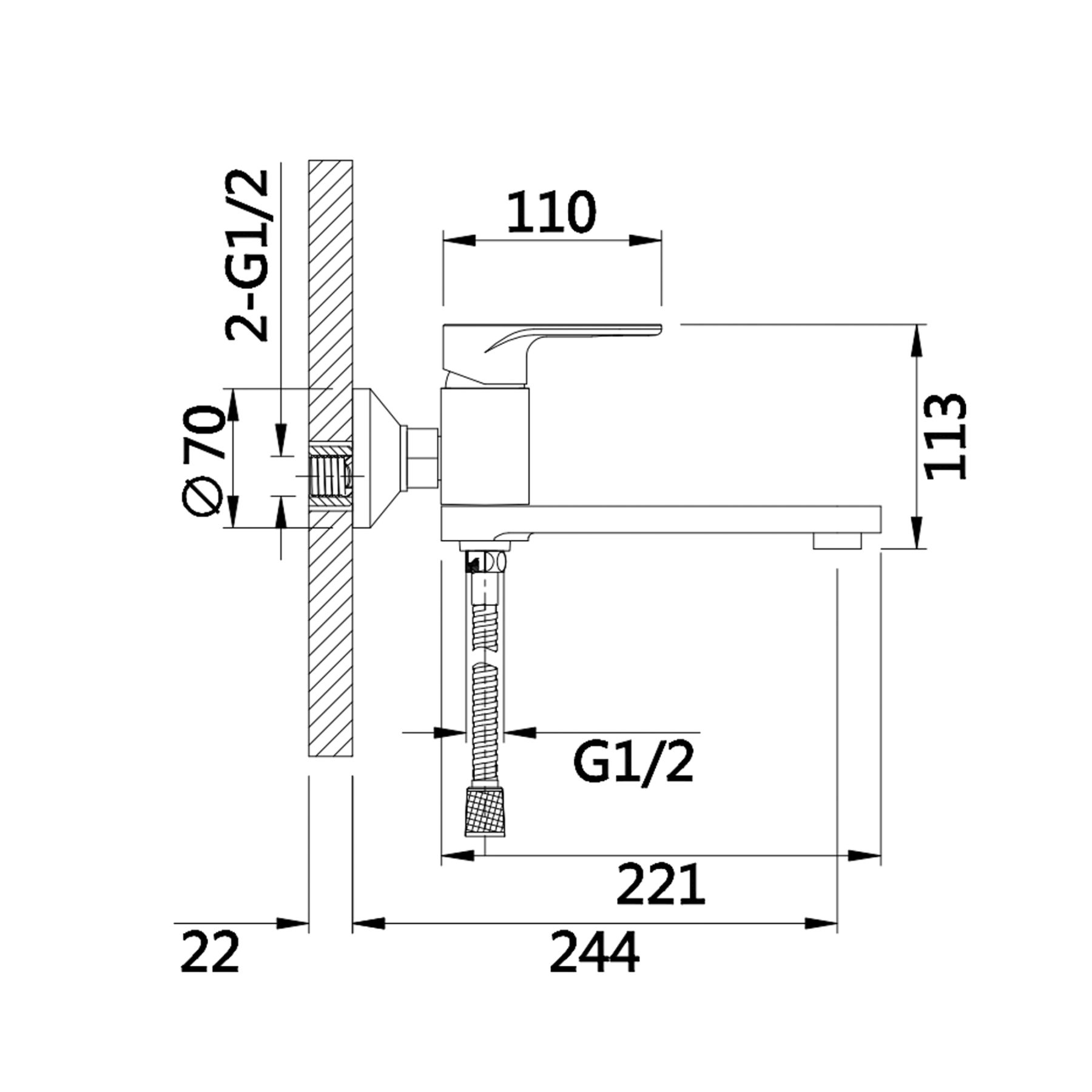 Комплектация:Змішувач, інструкція, відбивачі (2 шт), ексцентрики (2 шт), лійка для душу, шланг для душу 1, 5 м, настінне кріплення для душу.