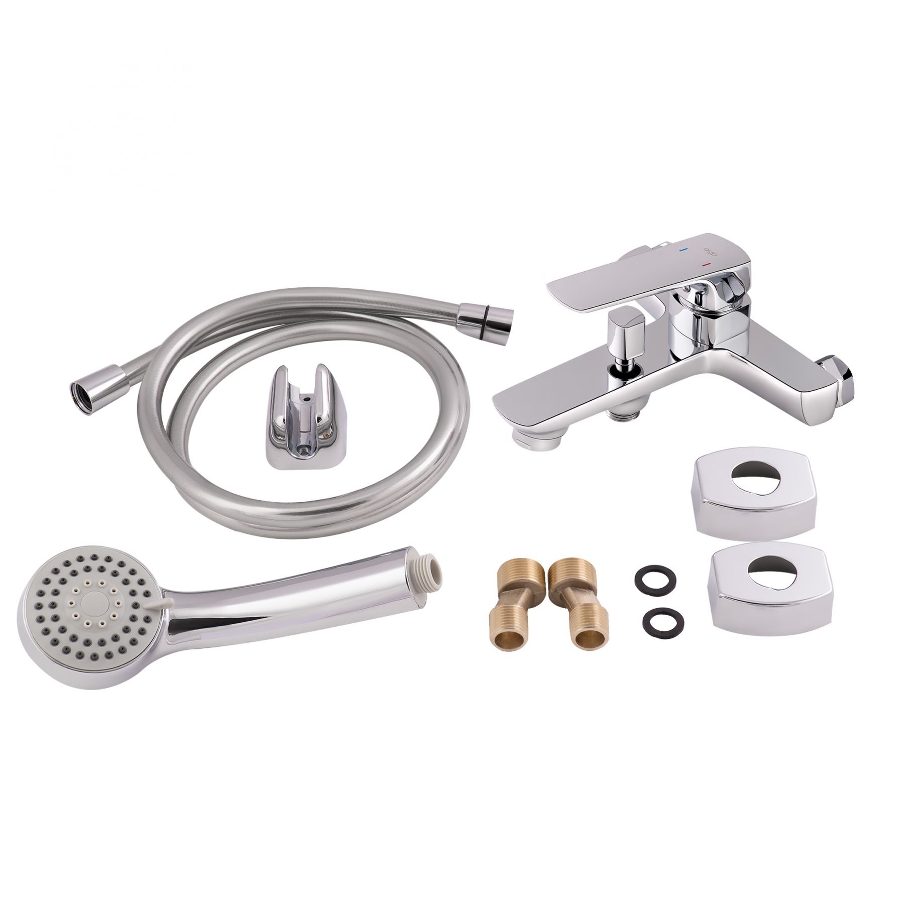 Комплектация:Смеситель. лейка для ручного душа. душевой шланг. кронштейн. крепежные детали.