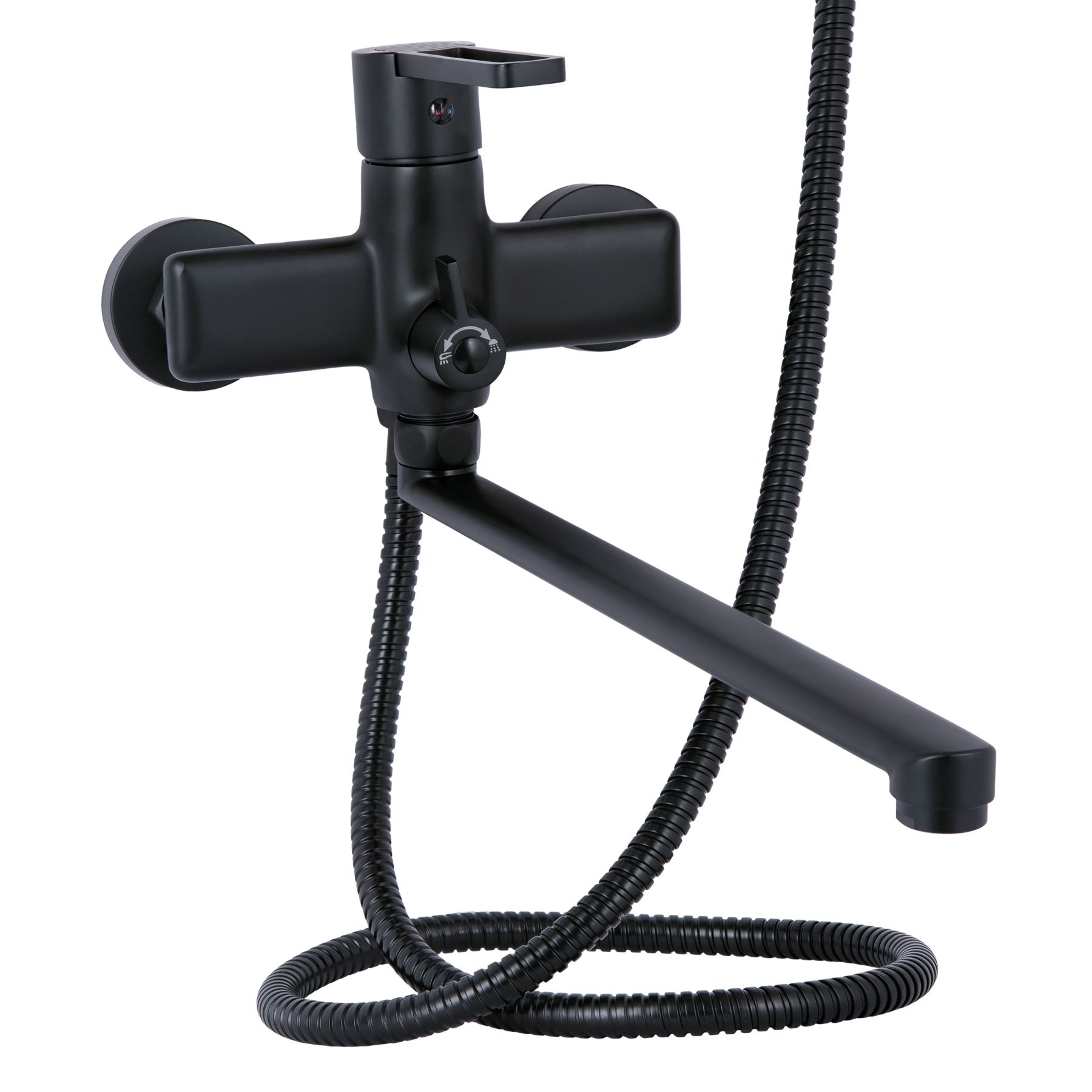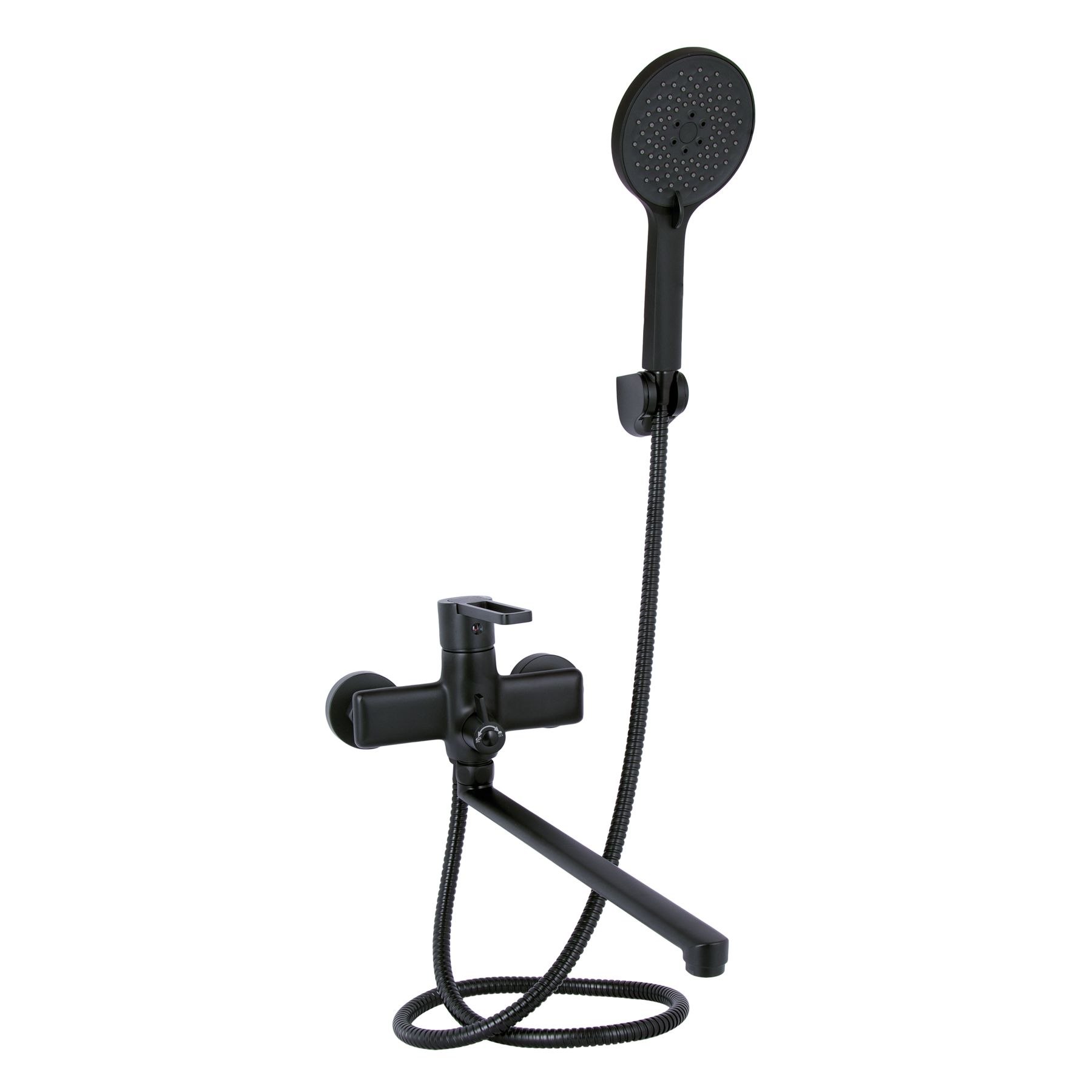Смеситель для ванны Qtap Taurus с длинным поворотным изливом (с душевым гарнитуром) QTTAU260BLM45664 Black Matt