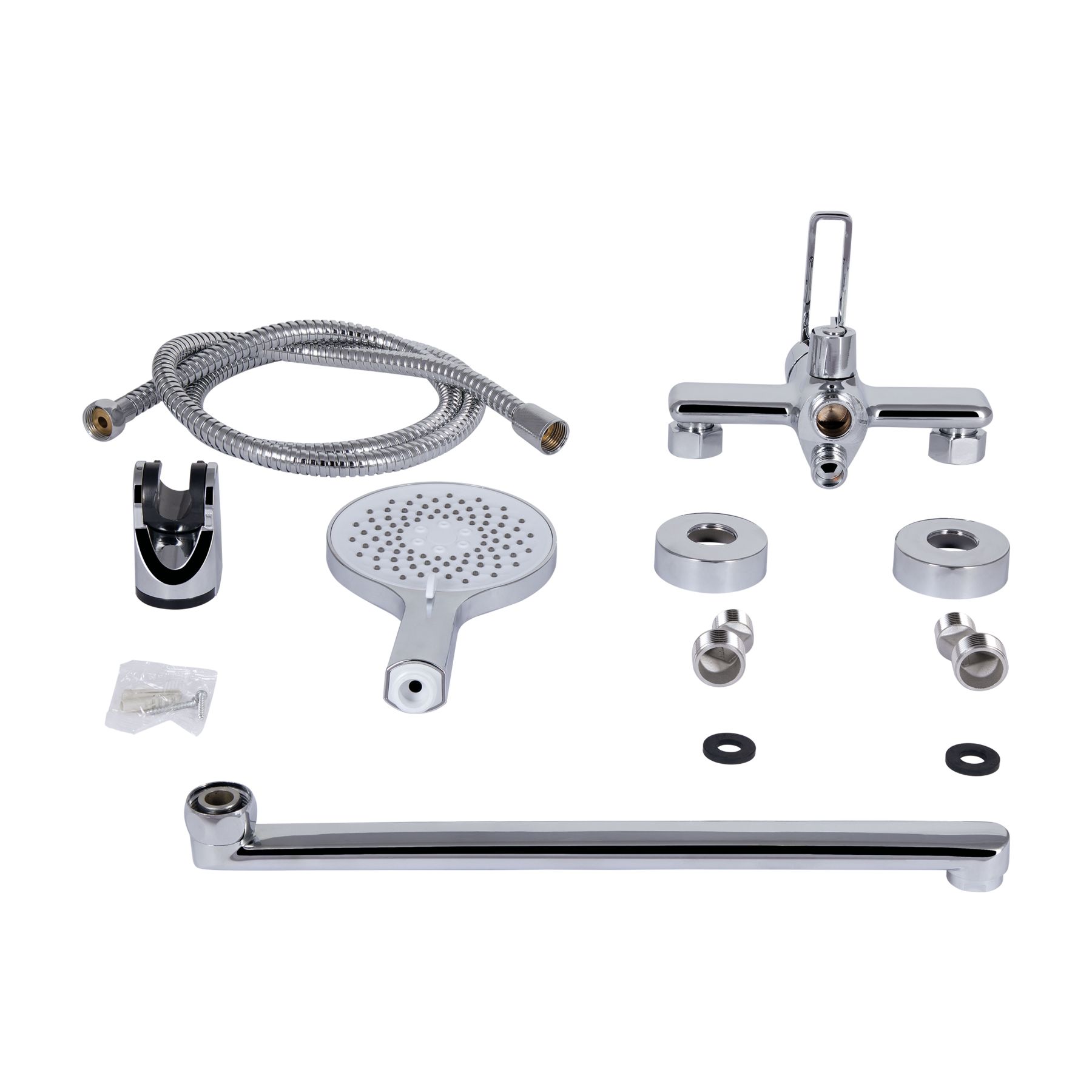Комплектация:Змішувач, лійка для ручного душу, душовий шланг, кронштейн, деталі кріплення.