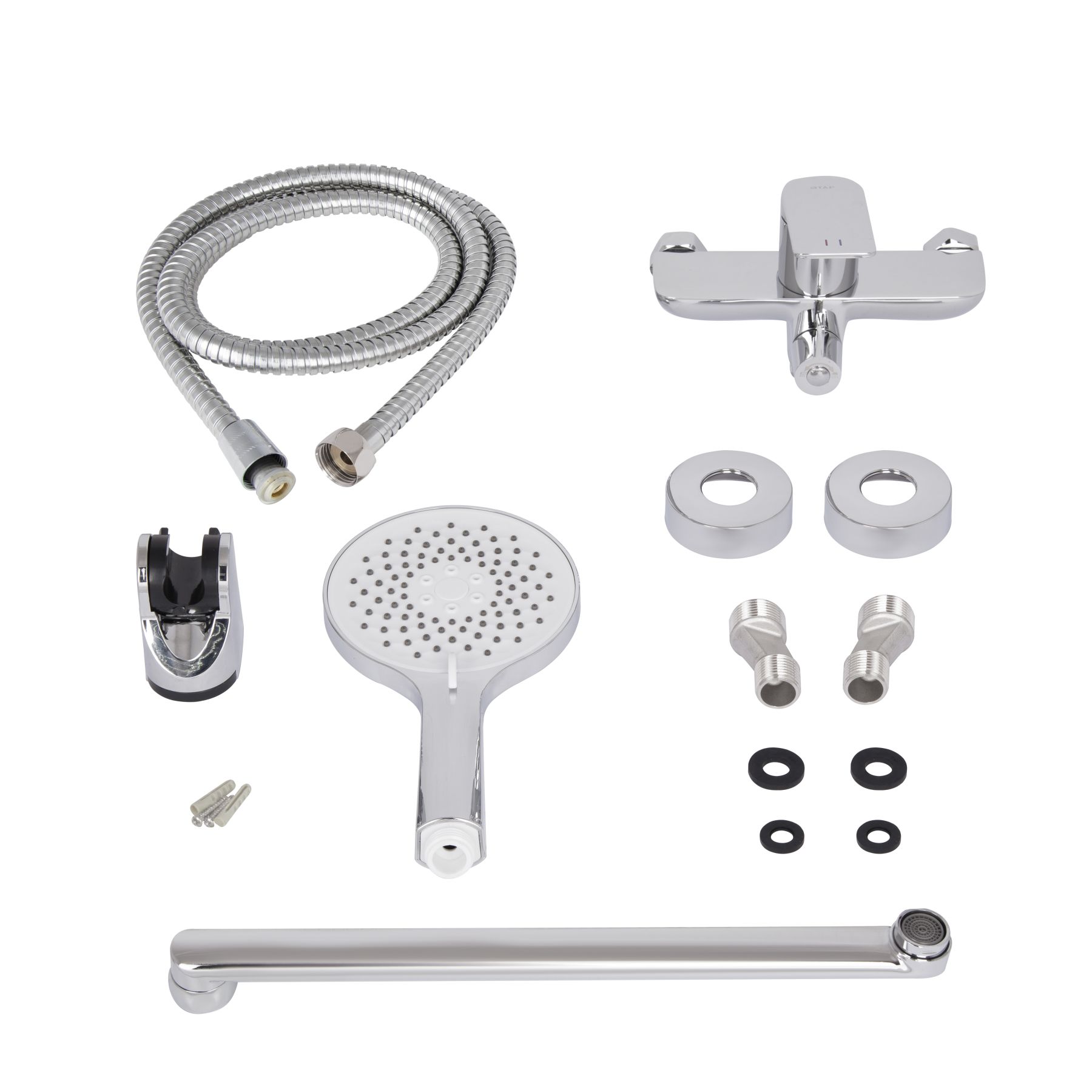 Комплектация:Смеситель, лейка для ручного душа, душевой шланг, кронштейн, крепежные детали.