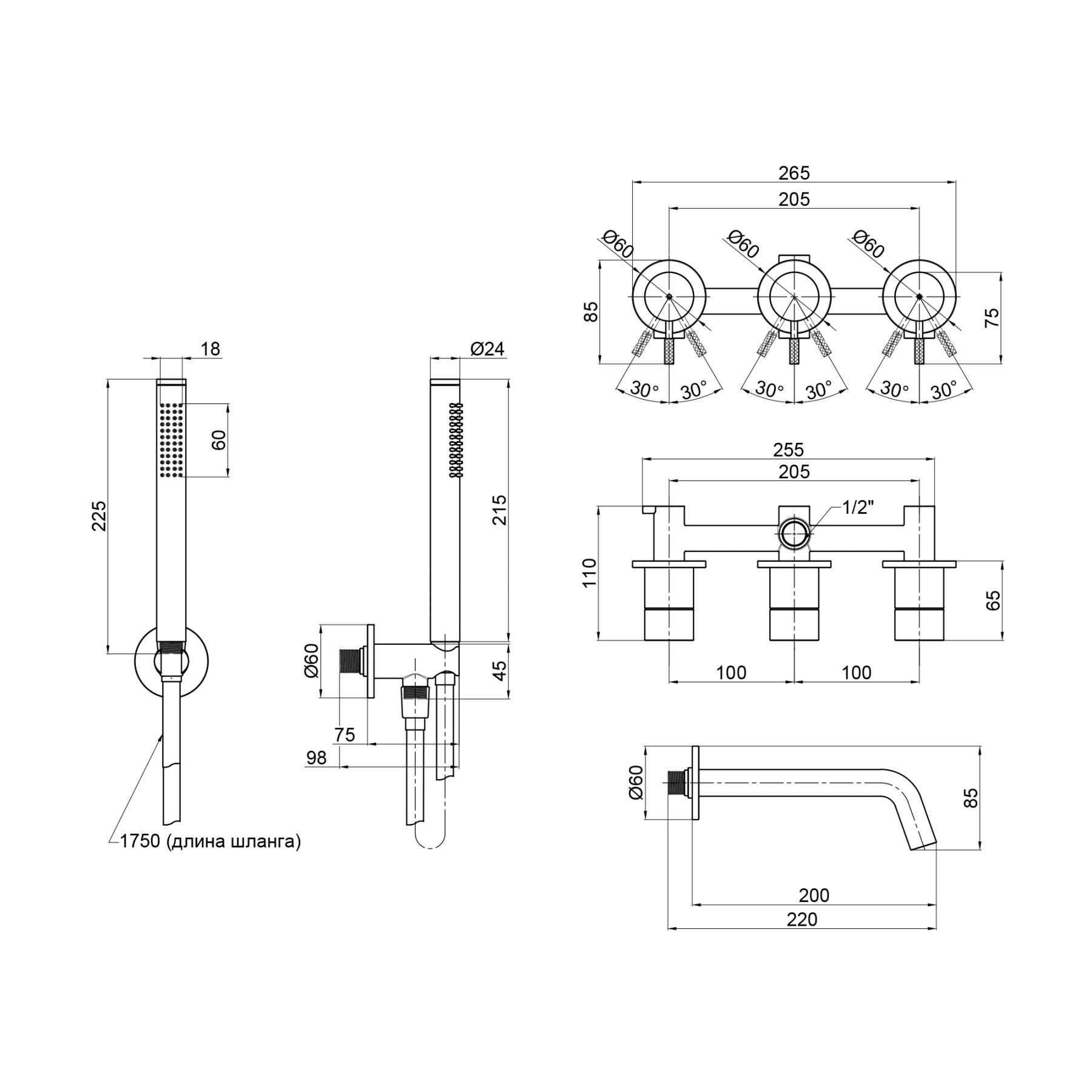 Дополнительные характеристики:Длина душевого шланга 1750 мм.