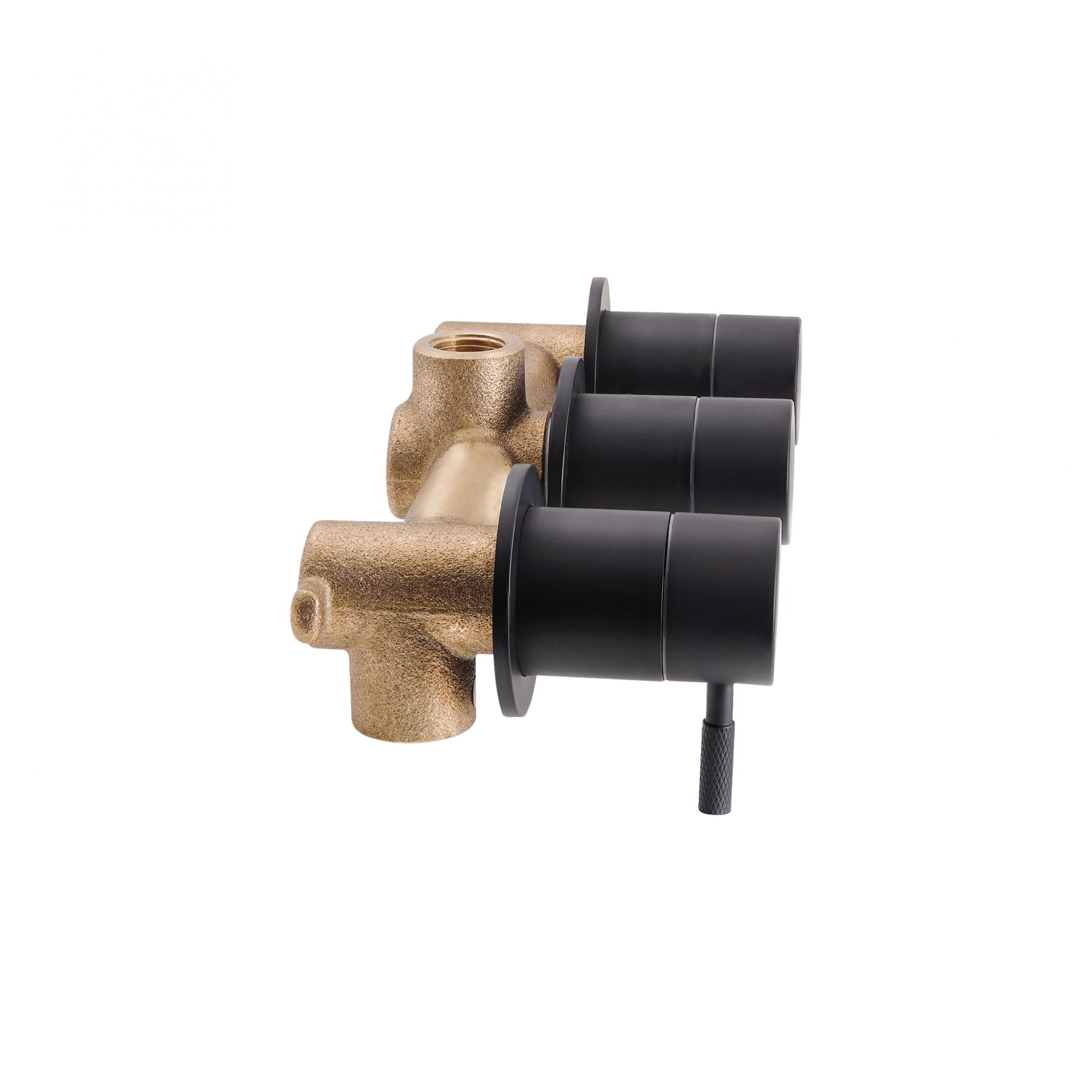 Смеситель скрытого монтажа Qtap Scorpio 3350105GB для двух потребителей изготовлен из прочной и износостойкой латуни с равномерным матовым покрытием черного цвета, благодаря которому изделие имеет привлекательный внешний вид и более устойчив к механическим повреждениям. Подача и регулировка температуры воды осуществляется с помощью удобных рычагов, а переключение в душевой режим – поворотным дивертором. Благодаря такому смесителю интерьер ванной будет смотреться стильным и современным.