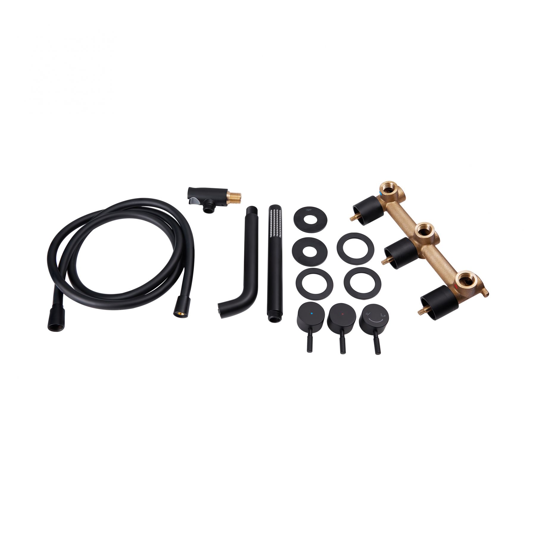 Комплектация:Смеситель скрытого монтажа. душевой шланг. лейка для ручного душа. держатель для ручного душа. крепежные детали.