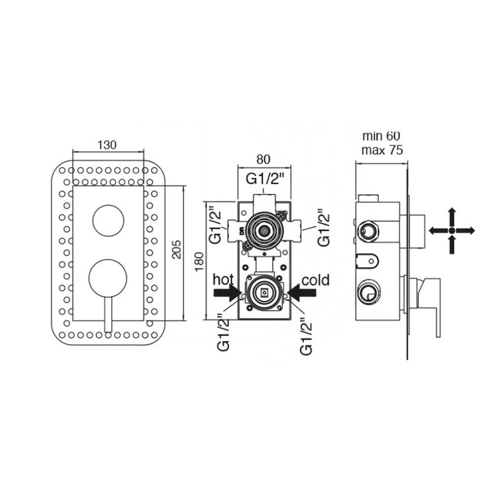 Смеситель скрытого монтажа для ванны Bianchi Freedom INDFRE2304046CRM для трех потребителей