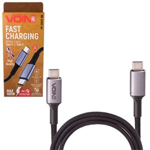Кабель VOIN Type C - Type C 5А/20V, QC4.0/PD 1m, black (быстрая зарядка/передача данных) (VP-3501C BK)