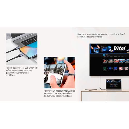 <p>Кабель VOIN VP-3502C BK c підтримкою швидкої зарядки PD2.0 100W підходить для зарядки і синхронізації вашого пристрою з інтерфейсом Type-C. Кевларовая обплетення служить надійним захистом від перегинання і пошкоджень кабелю.</p><p>Місце, де з'єднується кабель і роз'єм, закрито вставкою з термопластичного еластомеру. Кабель швидко і повністю заряджає пристрій, не пошкоджуючи його при цьому і не перегріваючи. Швидкість передачі даних 480 Мбіт / с.</p><p>Переваги даного кабелю:</p><ul> <li>Стильний дизайн</li> <li>Гнучкий кабель, який не буде переламувати</li> <li>Якісний провід в нейлонової оболонці</li> <li>Швидке підключення за 1 секунду</li> <li>Вихідний струм до 5А</li> <li>Підтримується зарядка PD2.0 100W</li> <li>Швидкість передачі даних до 480 Мбіт / с</li></ul><p>Кабель для зарядки мобільних і портативних пристроїв VOIN VP-3502C BK сумісний з усіма гаджетами, які мають роз'єм Type-C.</p>