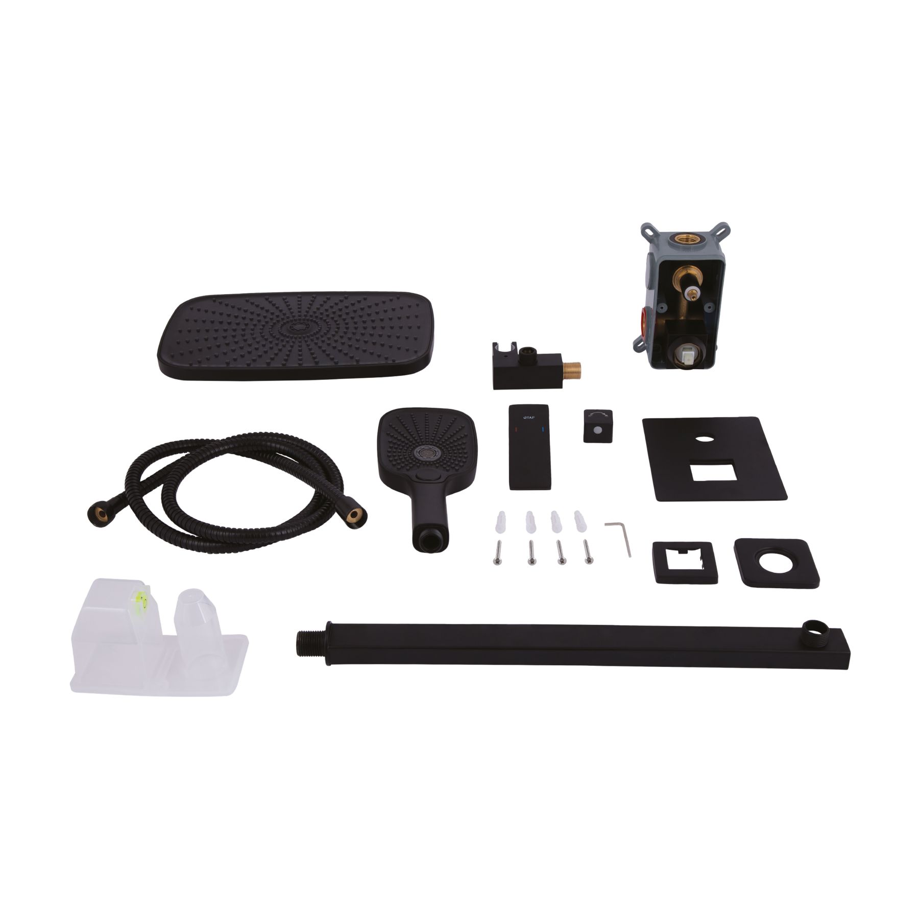 Душова система для душу прихованого монтажу на два споживачі Qtap Gemini QTGEM113BLM45697 у матовому чорному виконанні поєднує в собі елегантність та функціональність. Система включає верхній та ручний душ, що робить її зручним та практичним рішенням для ванної кімнати. Матове чорне покриття захищає виріб від забруднень та надає йому сучасного вигляду.