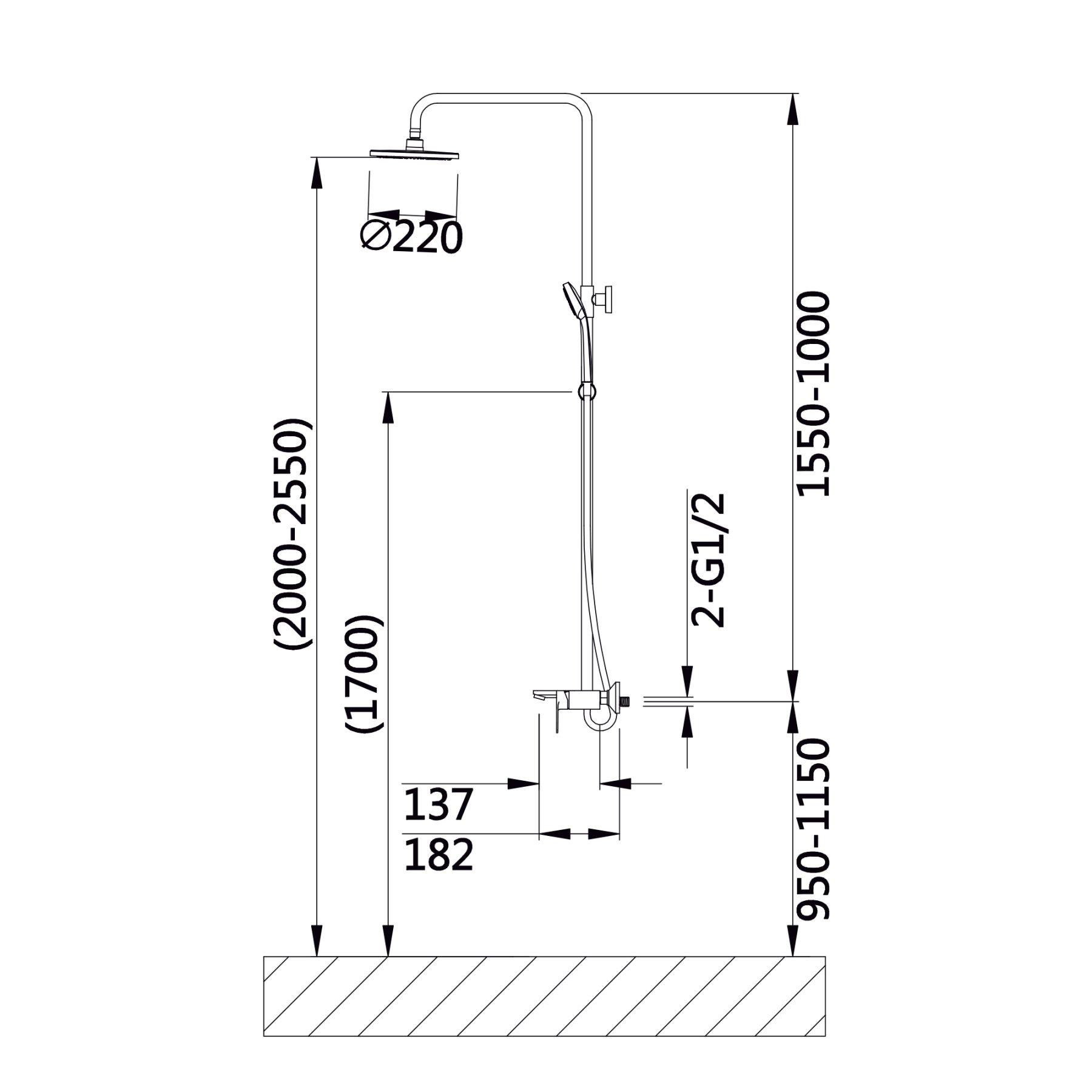 Форма:Ручний душ: квадратна. Верхній душ: квадратна