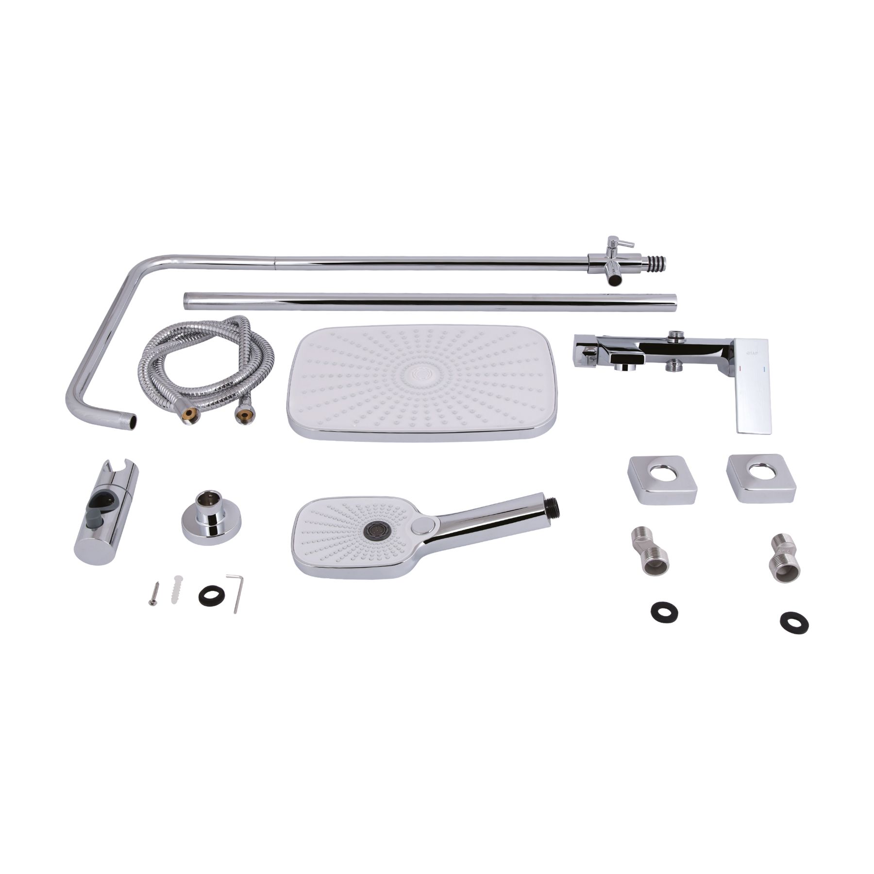 Комплектація:Змішувач, душова стійка, лійка для ручного душу, душовий шланг, кронштейн, деталі кріплення.