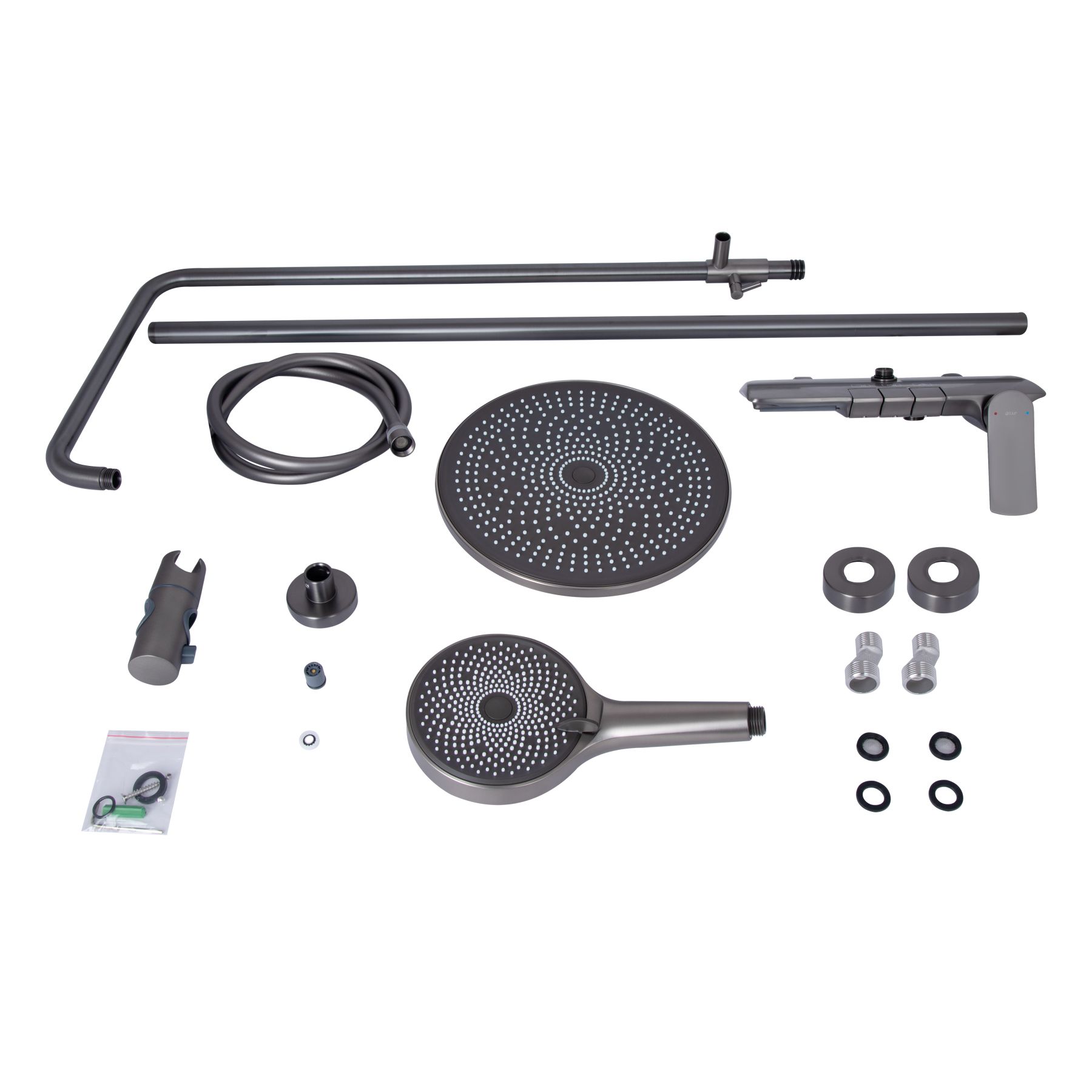 Душова система Qtap Slavonice QTSLA111GMB45905 у виконанні Gunmetal Black PVD - це поєднання стилю та функціональності. Система включає верхній душ, ручний душ та вилив для ванни, що забезпечує максимальну зручність у використанні. Покриття Gunmetal Black PVD відрізняється високою стійкістю до корозії та зносу.