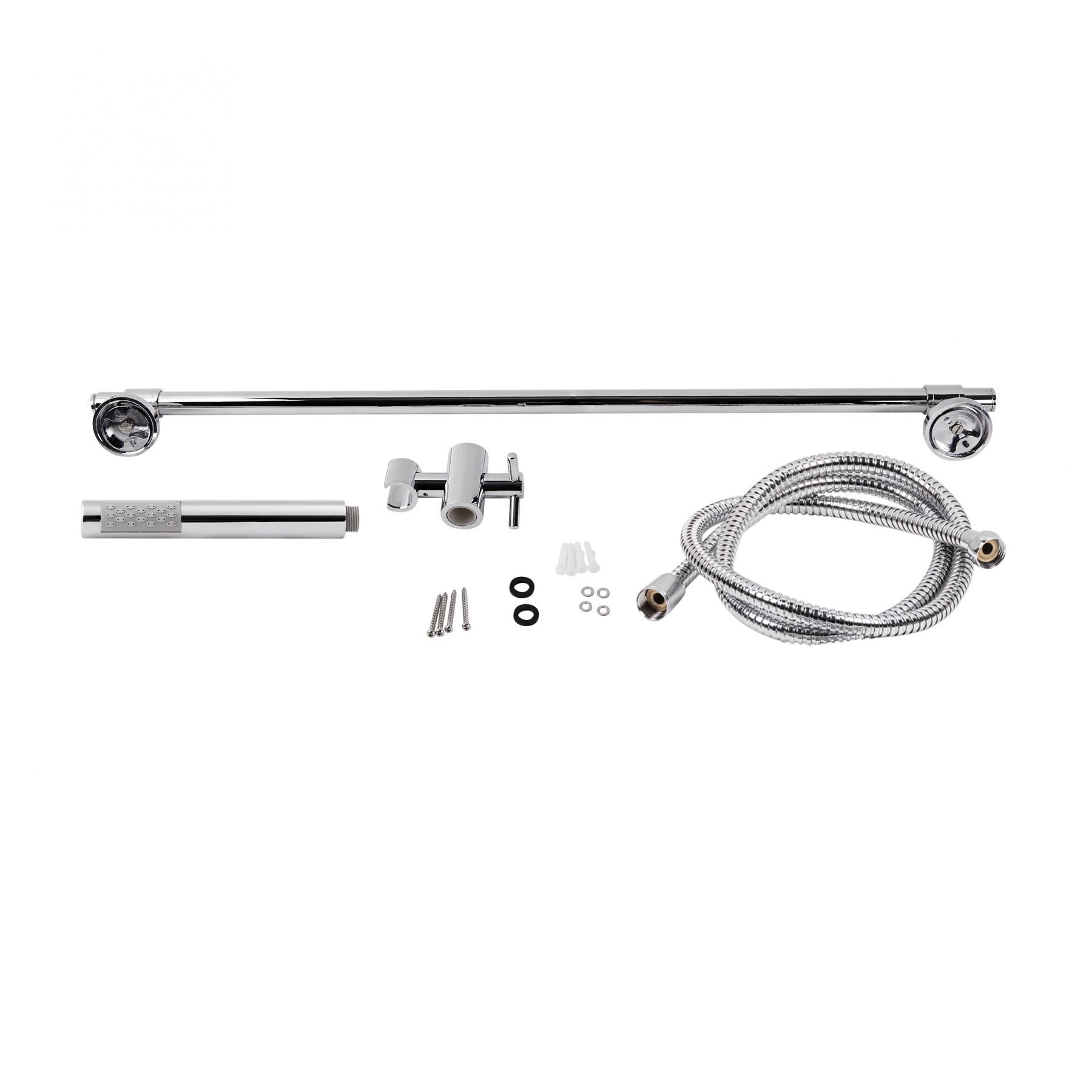 Комплектація:Душова стійка, кронштейн для ручного душу, лійка для ручного душу, душовий шланг, кріпильні деталі.